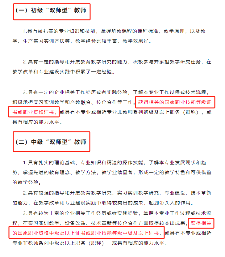 在职业教育领域,“双师型”教师是重要的人才培养目标之一。广东省、安徽省、陕西省、河南省等多省都鼓励教师持1+X证书参与“双师型”教师评定。此外,部分学校计划往“双高型”院校发展,因此对“双师型”教师的数量也有占比要求。