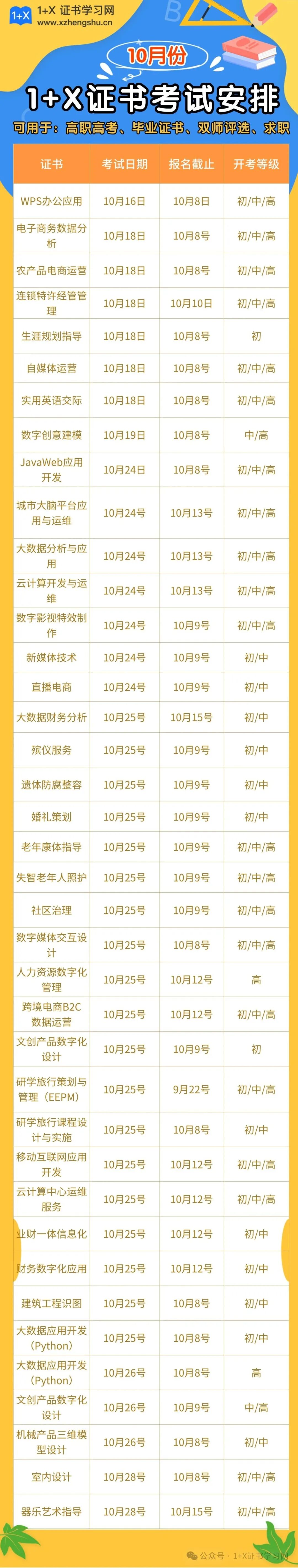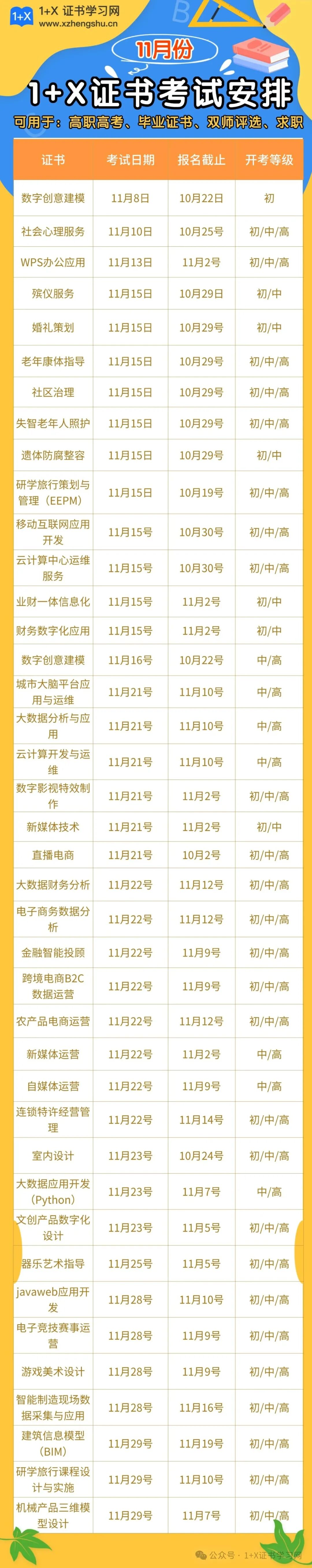 收藏!10月&11月1+X证书最新考试时间已公布!