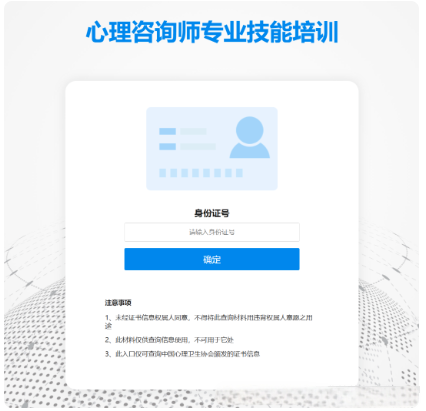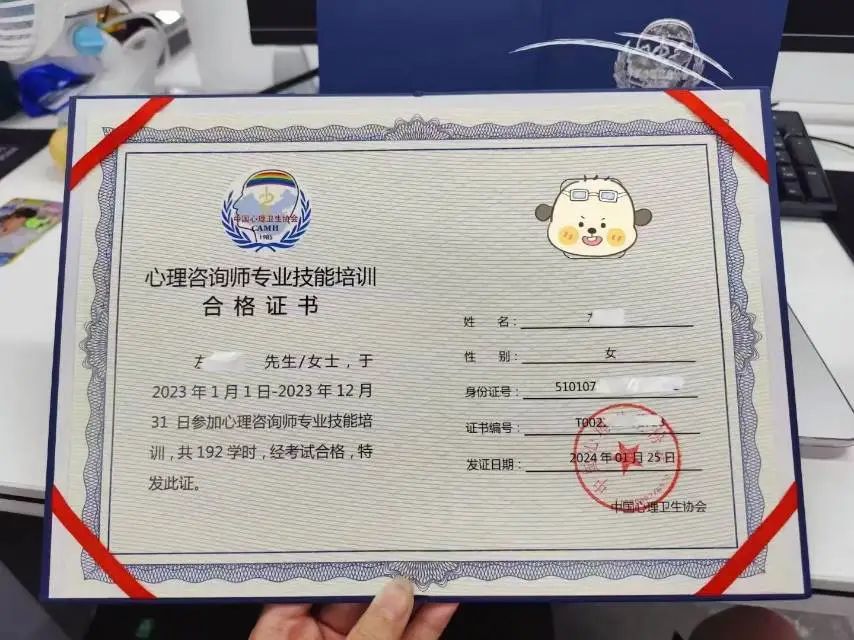 经考核合格,由中国心理卫生协会颁发《心理咨询师专业技能培训》证书。证书统一编号,中国心理卫生协会项目官网提供查询。此证书表明持证人已经通过相关课程的培训考核,具备相应的专业知识和职业技能,可作为能力评价、考核、聘用和任职的参考。