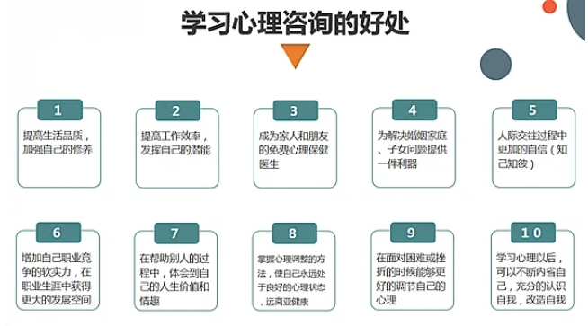 心理咨询本就是自助又助人的学问,学了之后处理家庭矛盾、人际交往、婚姻感情和亲子教育问题,往往能事半功倍,甚至原本头疼的难题都能迎刃而解。